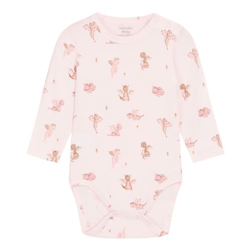Langermet body i myk og tøyelig bambusviskose med dino print. Den praktiske kneppingen på venstre skulder og mellom bena gjør av- og påkledning enkel. Perfekt for sart hud, takket være pustende og temperaturregulerende bambusfiber.