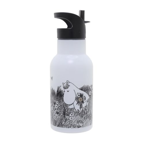 Vannflaske med skrukork og sugerør .. Superfin flaske i høykvalitets stål med motiver fra Lotta på Bråkmakargata. Flasken har en termisk funksjon som gjør at væsker holder seg både varme og kalde.