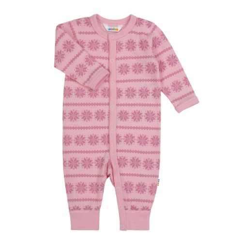 Myk og komfortabel heldress i god kvalitet fra Joha. Trykknapper fra nederste del på det ene beinet og helt opp gjør det mye enklere å både skifte bleie og ta dressen av og på