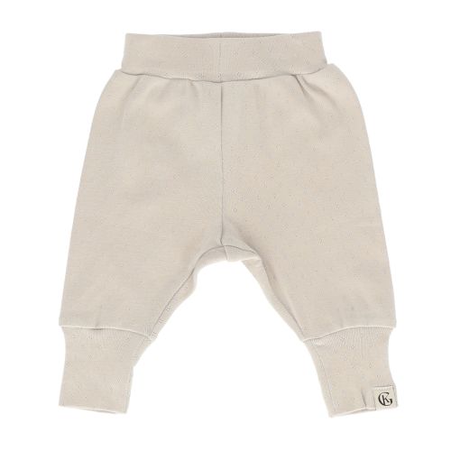 En myk og behagelig babybukse i deilig bomull – perfekt for rolige dager hjemme eller små eventyr ute. Laget i et søtt pointelle-stoff med delikat mønster som gir et sjarmerende preg. Den lette bomullskvaliteten er ekstra snill mot sensitiv hud, og gir barnet god bevegelighet og komfort hele dagen. Myke, elastiske kanter sørger for en behagelig passform uten å stramme.
