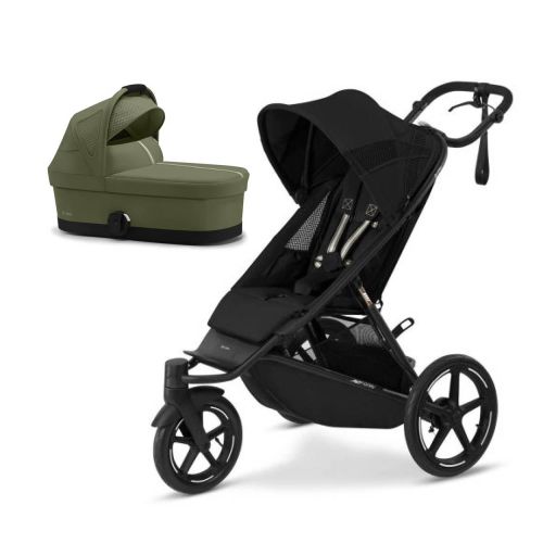Komplett vogn, Cybex, Avi Spin, BLK Moon Black inkl- liggedel Moss Green