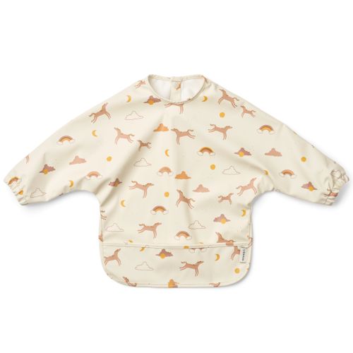 En langermet smekke er perfekt for små barn som utforsker mat og skal lære å spise på egenhånd. Den er enkel å rengjøre og kan brukes om igjen og om igjen, noe som gjør den både praktisk og miljøvennlig. Med denne smekken kan barnet ditt nyte måltidene sine uten å bekymre seg for søl og flekker på klærne. Smekken er lett å ta av og på med borrelåslukking i nakken.