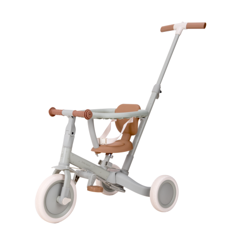 Sykkelen kan raskt konverteres fra trehjulssykkel til balansesykkel ved å folde de to bakhjulene innover. Dette gjør overgangen til en sykkel med pedaler enklere. Pedalene er enkle å montere og kan oppbevares praktisk på rammen under setet når de ikke er i bruk.
