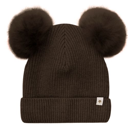 Lue, Huttelihut, AlpacaWool Pompoms, Dark Brown Melange