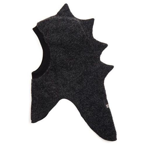 Tøff og varm dino lue i tovet ull fra HUTTEliHUT. Foret er laget av myk bomullsvelour og formsydd, som gjør den varm og vindtett på kalde dager og har god passform.