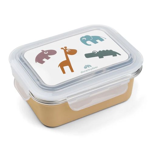 Matboksen i metall fra Done By Deer er et must når du er på farten. Metallboksen er perfekt til din barnets lunsj, og plastlokket lukkes tett på matboksen i rustfritt stål. Matboksen i metall er laget av kvalitetsstål – 18/8 rustfritt stål – som gjør matboksen svært slitesterk og langvarig. Det er ingen belegg på innsiden av matboksen og den avgir ingen form for smak eller kjemikalier.