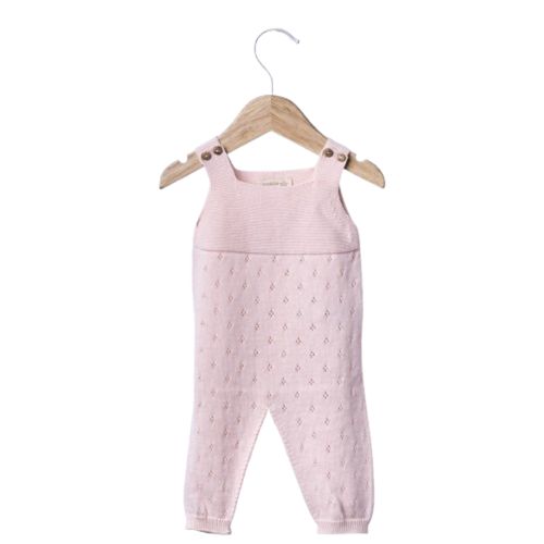 Strikket selebukse med skulderstropper, laget i myk og pustende økologisk bomull. Selebukse er laget i finmasket strikk og produseres som ett helt sømløst plagg med Wholegarment-teknologi, som gir maksimal komfort for de minste. Lukkes med små treknapper på skuldrene for et naturlig og sjarmerende uttrykk. Et tidløst og behagelig plagg for lek, kos og hverdagsbruk.