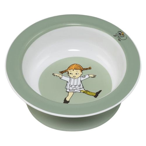 En slitesterk bolle med et fint pippi-motiv er både dekorativ og funksjonell, spesielt med silikonringen som gir stabilitet på bordet.