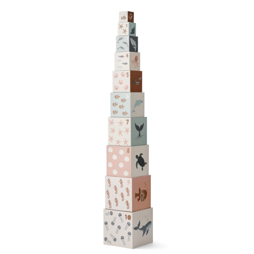 Stable, dekonstruere og begynne på nytt - Stableklossene fra Liewood er et flott verktøy for å utvikle finmotorikken, kreativiteten og læringen hos små barn. Stablekassene er laget av 10 kvadratiske blokker med tungvektspapp og hjelper små byggherrer med å øve på finmotorikken mens de eksperimenterer med dimensjoner. De ulike motivene på hver side stimulerer til læring om symboler og tall.