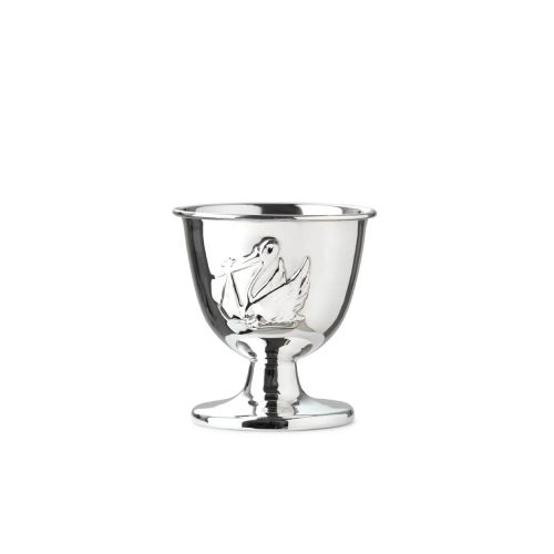 En klassisk eggekopp i sølv med detaljert storkemotiv. Produsert av Arven siden 1920 og en tidløs gave til dåp eller navnefest. Kan graveres med navn og dato, og leveres gavepakket i en elegant gaveeske.